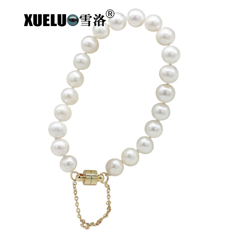 Fashion Perfect Round Genuine Real Natural Cultured Freshwater Pearl Bracelet(XL150136)